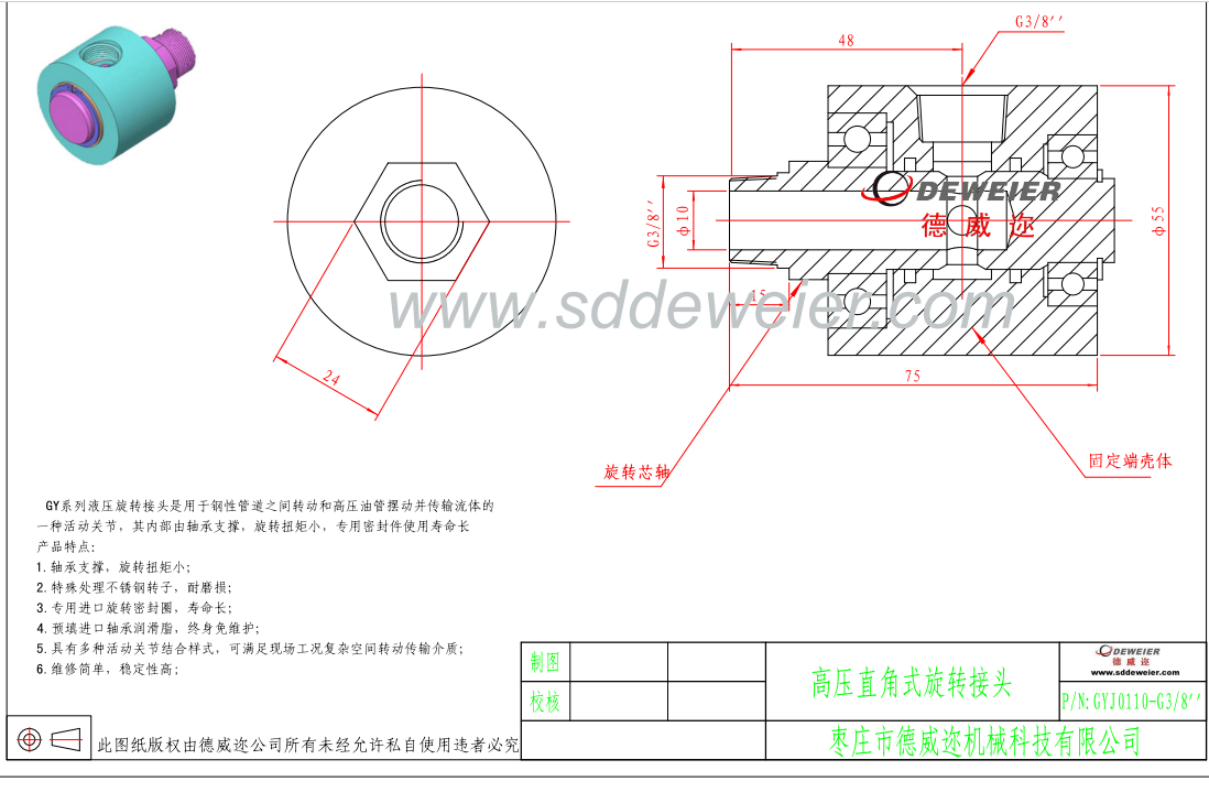 GZJ型高壓直角式旋轉(zhuǎn)接頭是用于鋼性管道之間轉(zhuǎn)動(dòng)和高壓油管擺動(dòng)并傳輸流體的一種活動(dòng)關(guān)節(jié),其內(nèi)部由軸承支撐,旋轉(zhuǎn)扭矩小,專用密封件使用壽命長(zhǎng)