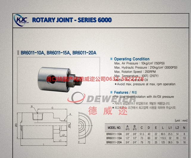 光珍KJC旋轉(zhuǎn)接頭BR6011-10A/6011-15A/6011-20A